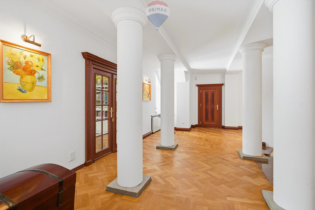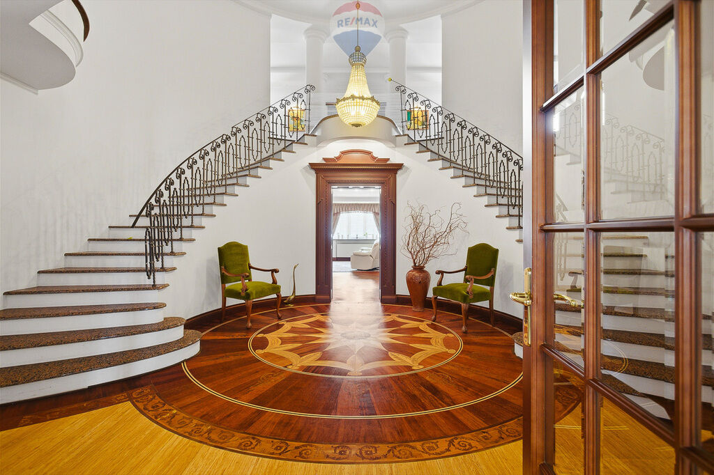Piętro zachwyca reprezentacyjnym wejściem dwubiegowe marmurowe